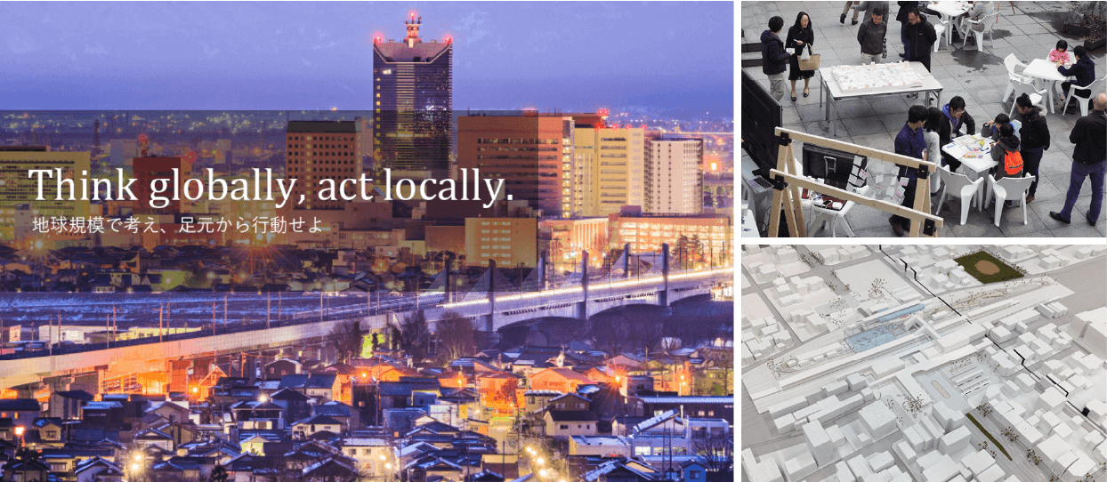 富山市の夕暮れの街並みの写真を中心に、紫赤水色のパステルカラーのグラデーションをイメージカラーとして、Webサイトをデザインしました。